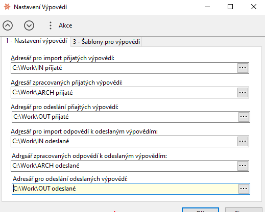 Nastavení složek pro modul Výpovědi