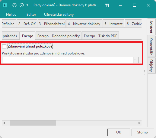 Aktuálně bylo prováděno zdanění plateb Energo pomocí tzv. textové položky. Nyní bylo provedeno rozšíření o možnost zdanění pomocí tzv. službové položky.
