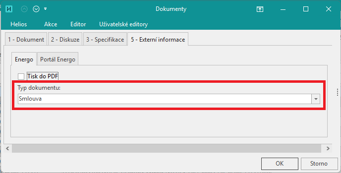 Nastavení atributu je prováděno na základě nastavení atributu připojeného dokumentu Typ dokumentu na hodnotu Smlouva.