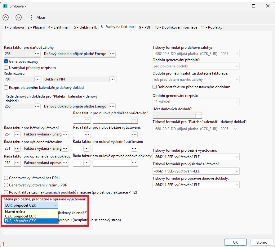 umožněno použití ročního kurzu EUR pro fakturaci Energo.